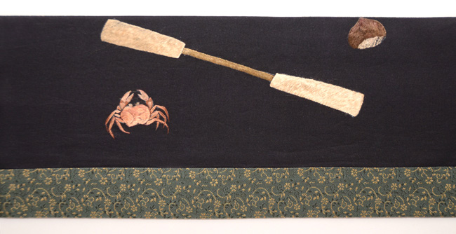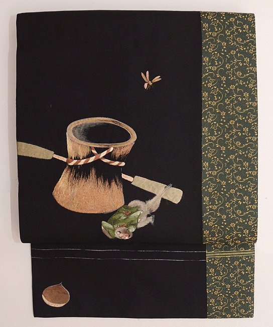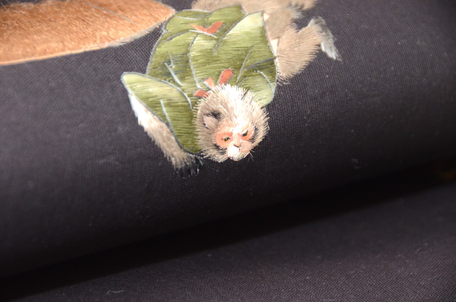 中国清朝官服の刺繍部分をコラージュして帯としており、非常に手間をかけたことでしょう。