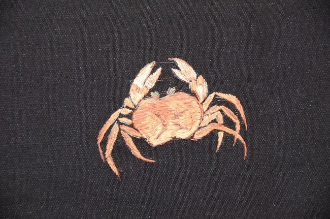 蝶々、蝉、カマキリ、蜻蛉、鈴虫、蛍、殿様バッタにショウリョウバッタ、蜂、しじら、蛍、カナブン、トンボ、ヤゴ、コオロギと、見事な型友禅が本手摺りされた縮緬の帯。