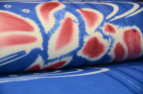 白い絣の文様も一様でなく、よく考え出された手の込んだ、拡張高いものとなっています。