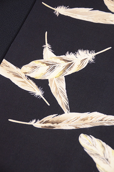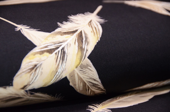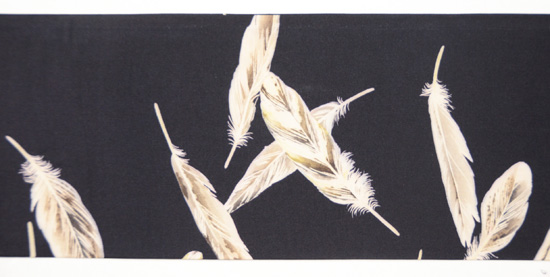 黒地に鳩の羽根でしょうか、かわいい形で、リズミカルに配されています。