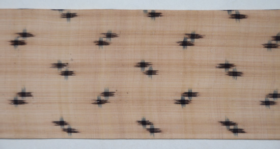十字絣と細縞の宮古上布を縦に64の割りで剥ぎ、それが全通になっています。
