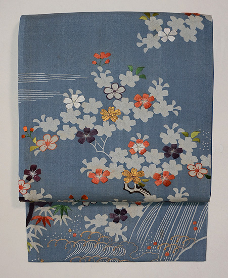 天然染料で表現されたおおらかな自然の美しさが胸を打つ、江戸期の小袖をお仕立て直した名古屋帯です。