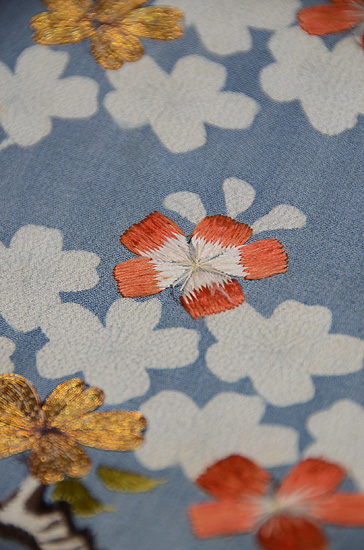 黄色や赤の明るい色味の糸と、青や紫、茶色系の深みのある糸とが上手く配されて、浦野さんらしい垢抜けた洒落感を漂わせます。