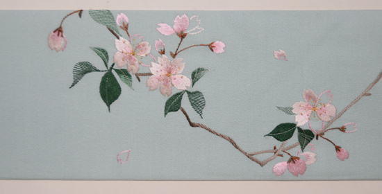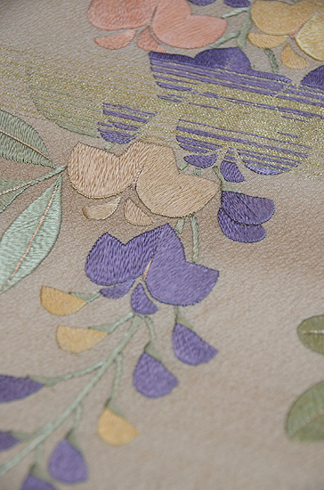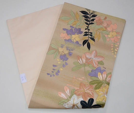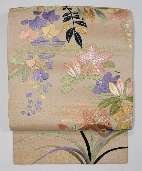 桜が散って、美しい5月に一気に咲くお花たち、ツツジ、藤、そして欄のみごとな刺繍帯です。