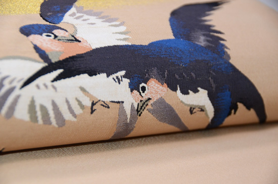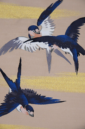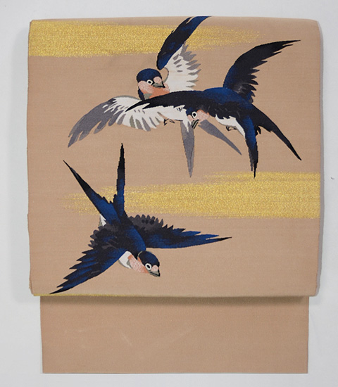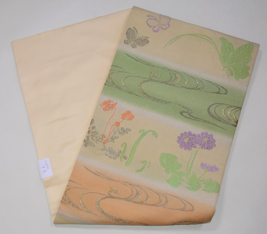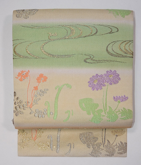 構図は迫力があるのに、淡い色ばかりで構成されているので、たおやかで落ち着きのある優しい帯になっています。