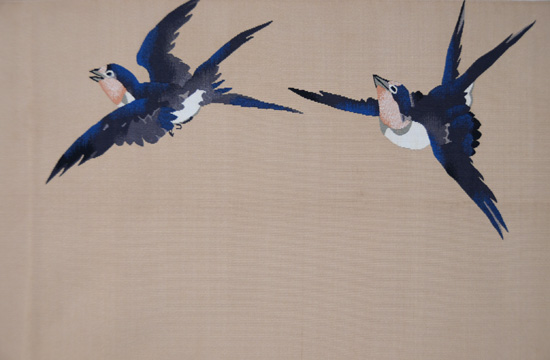 綴織りの上にこれだけの容量を刺繍する作業には、鍛錬の積み重ねが想像されます。