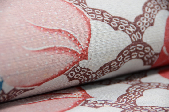 イギリス産のジャガード織りのカシミールですが、帯使用にふさわしい質感になっています。
