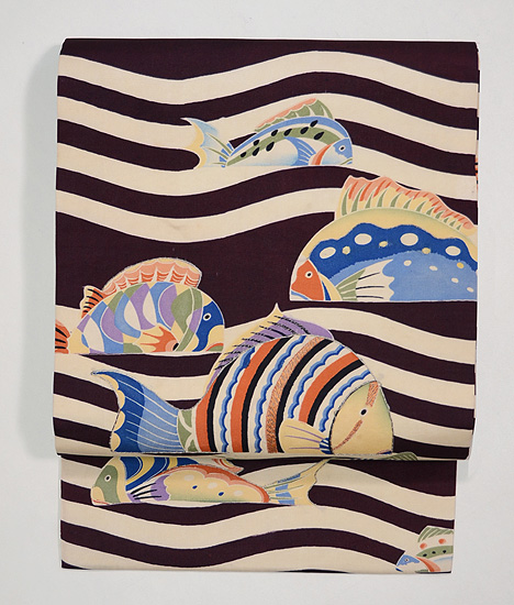 波に魚たちの名古屋帯