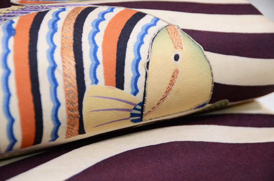 色々な手法でステッチされたモダンなデザイン、手縫いと信じられるまでに、時間がかかりました。