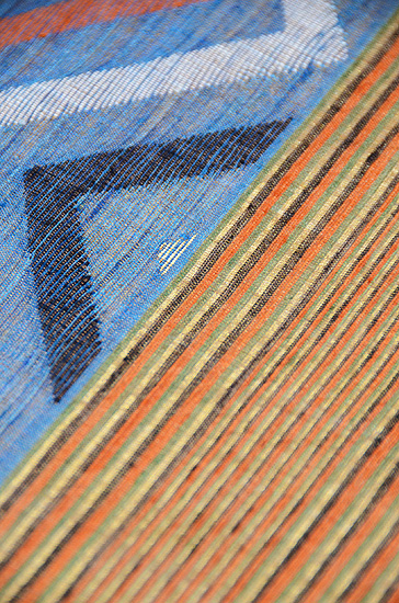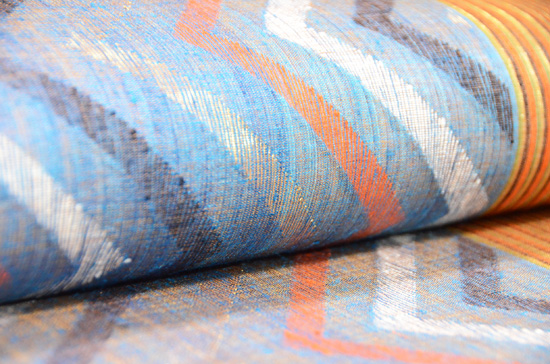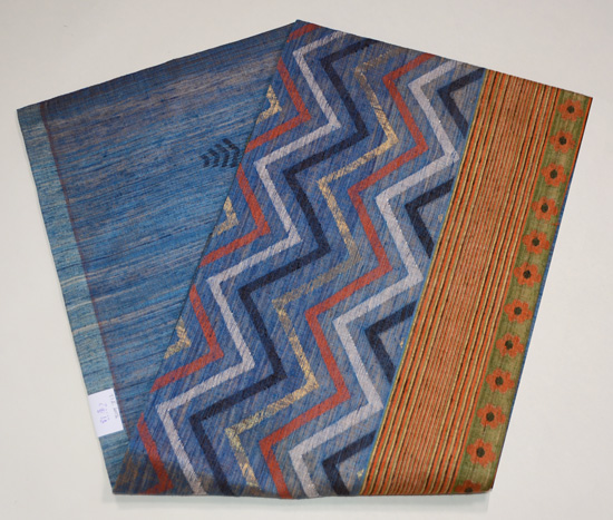 波文様の色糸が縦の縫取り織りになった珍しい織物です。
