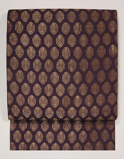 紫根色紋織りの名古屋帯