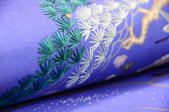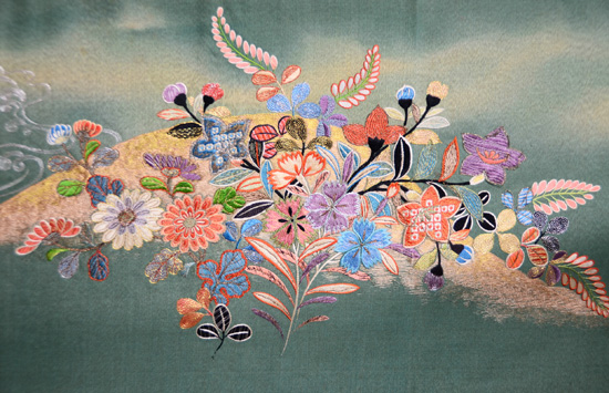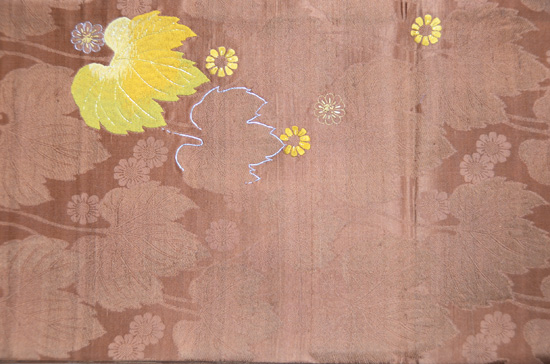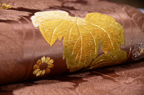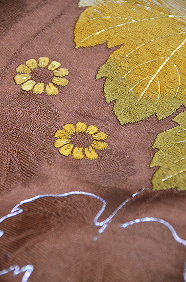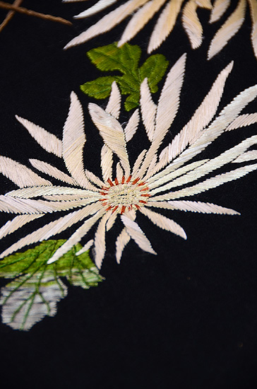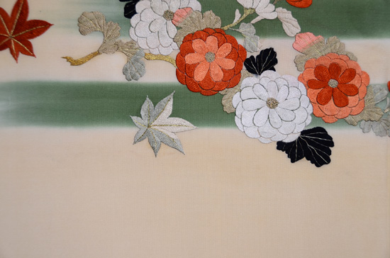 たっぷりと刺繍がされた大輪の菊と紅葉。