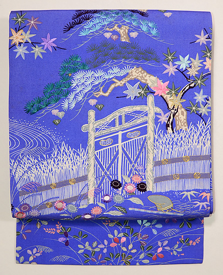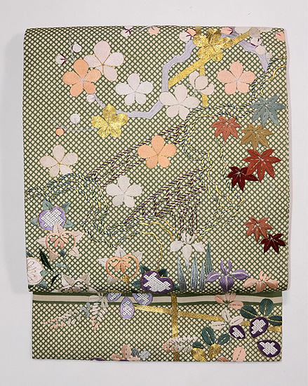 秋の河をゆったりと流れゆく美しい自然の風景を表現した華やかな刺繍帯です。