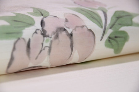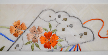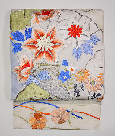友禅の糸目も鮮やかな、大輪菊と撫子の帯です。