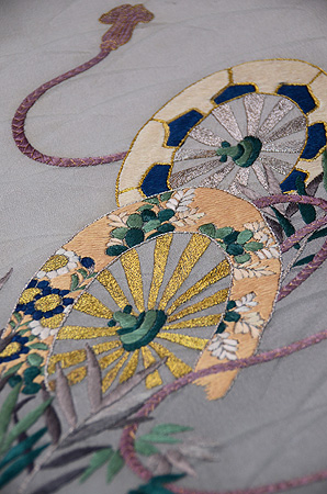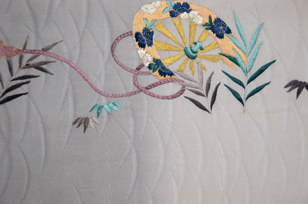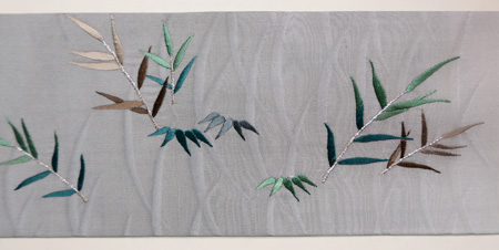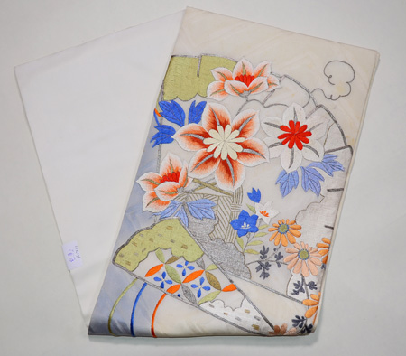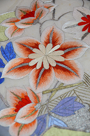 しっかりと硬く織られた綴れに、こんなに沢山の刺繍をよくぞ、と感動ものの袋帯です。