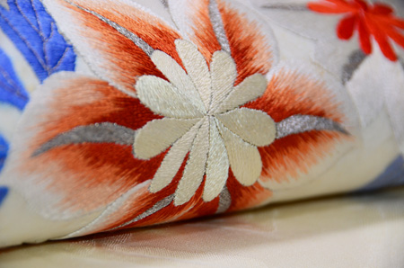 花びらの一枚一枚刺繍糸の色を変えて、丁寧に挿しています。