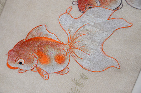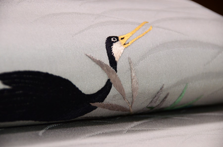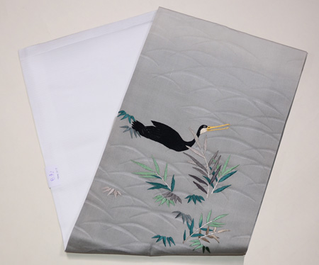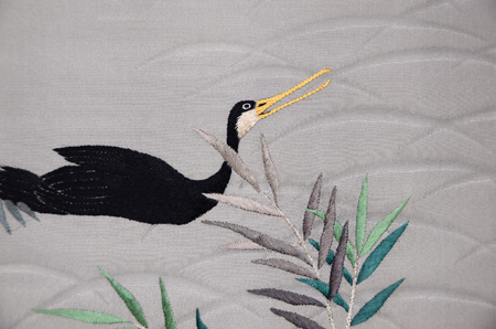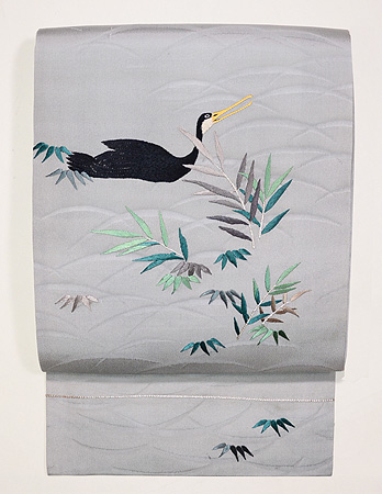 鵜の表情がユーモラスな、オリジナル刺繍の帯です。