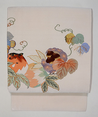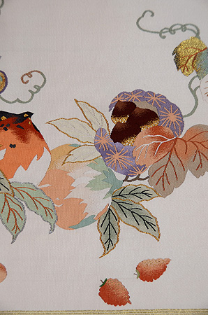 こちらは2月第2週に紹介した「フルーツ柄の綴れ名古屋帯」の妹に当たる帯です。