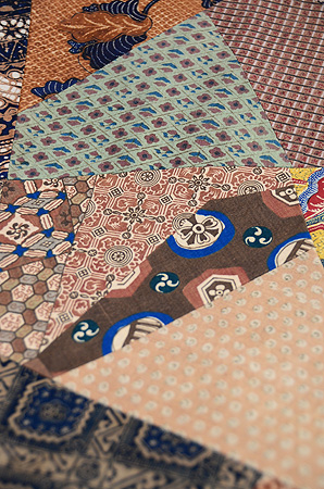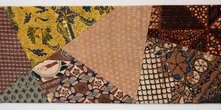渋めの各種更紗が、お行儀良く形に収まっていて、大人っぽい魅力の詰まった帯です。