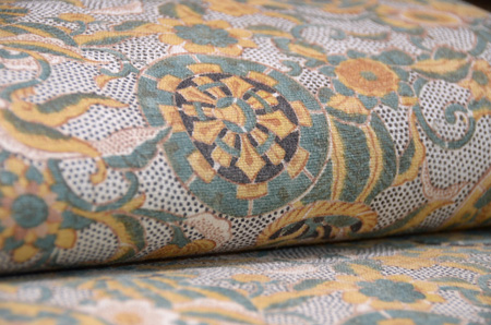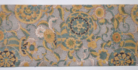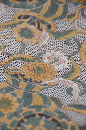 艶やかな色調に金銀で織り出された大きな図柄が、いかにもペルシャの匂いをはらんでいます。