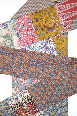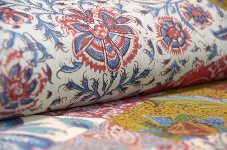 インド更紗、ジャワ更紗、ヨーロッパ更紗、和更紗帯を集めて帯に仕立てました。