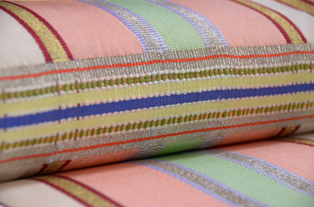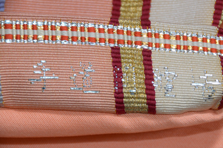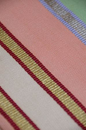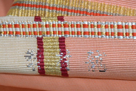5色の縞に金銀を織り交ぜて、美しい雅やかな帯です。