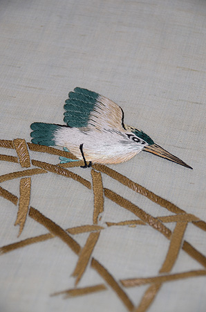 細糸の細やかな刺繍で、蔓や、愛らしいお花の様子などすばらしい技術です。