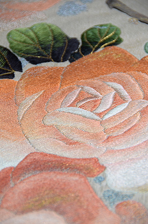 浦野のダイナミズムは健在ですが、刺繍の糸目は繊細で、色の暈しはとても美しく仕上がっています。