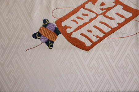 これだけでも品格ある立派な物ですが、その上にわらび、あやめ、蝶の丸紋が、刺繍された美しい色に見惚れます。