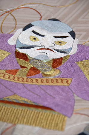 その上から、色糸で刺繍と、金糸で波頭をあしらっています。