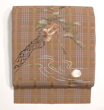 金銀で織られた松竹梅の丸紋と壺垂れ地紋様。