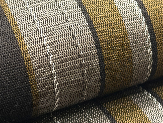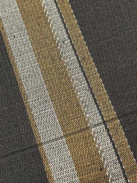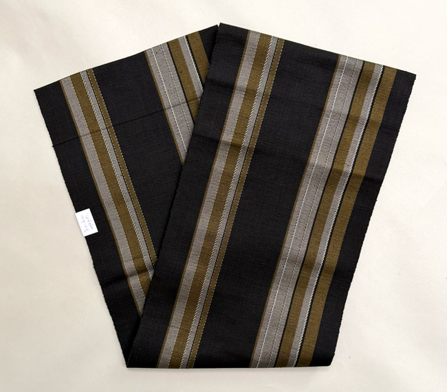 縞に微塵格子が絡まって、深い天然染料の色味と共に、重厚な趣が感じられる名古屋帯になりました。