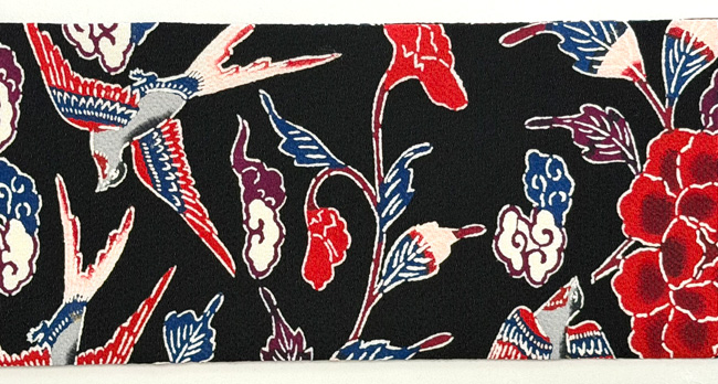 黒地牡丹に燕文鬼縮緬の名古屋帯