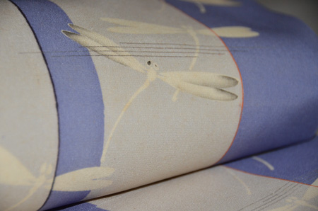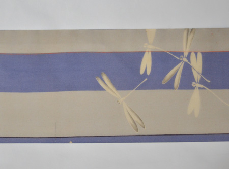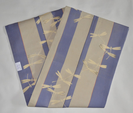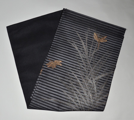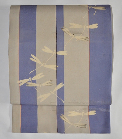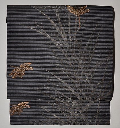 地紋を縞に織った紗の上にギンヤンマが、刺繍のように織り出されています。