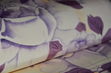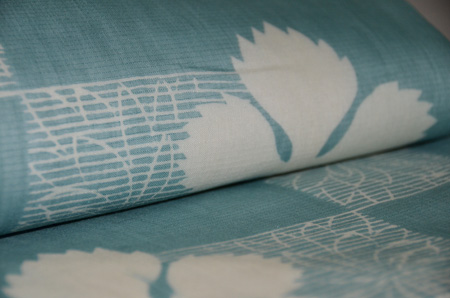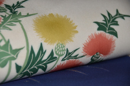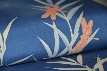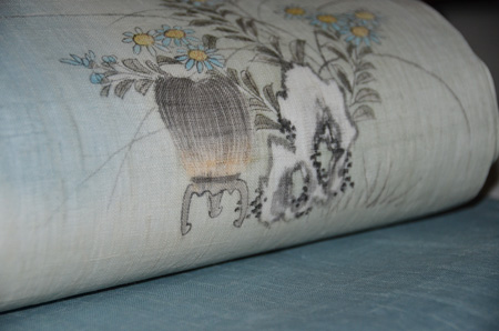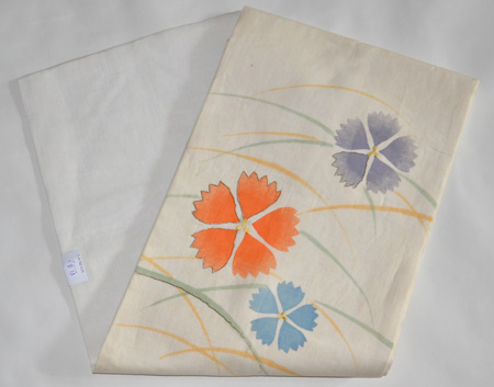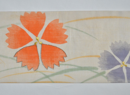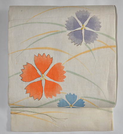 麻地につゆ草、撫子がはんなりと浮き上がっています。