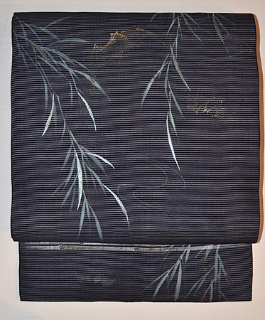 枝垂れ柳に蝙蝠が飛ぶ幻想的な帯です。