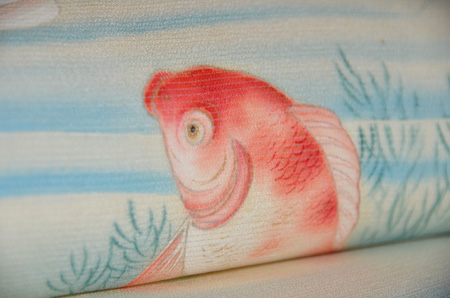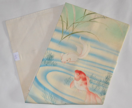 金魚が図案の帯としては、刺繍のものに素晴らしい帯を見かけますが、染めのものはどちらかというと優しい印象となります。