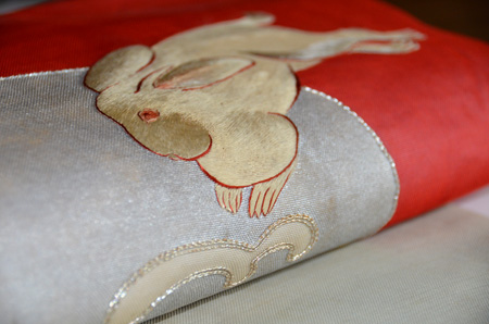古くから愛される古典的な図案ですが、こちらの帯の兎はどことなくアンバランス?な短い手足が愛嬌たっぷり。
