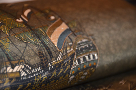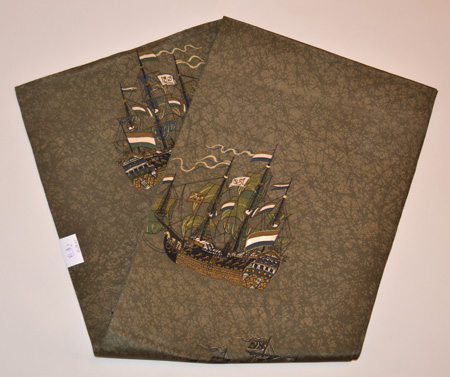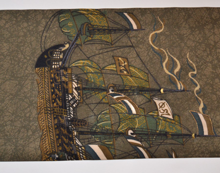 風をうけ走る帆船の図が、すっきりと染められています。