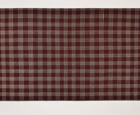 ベージュ、ボルドー、黒、3色の糸が、2寸の格子を織りなしています。