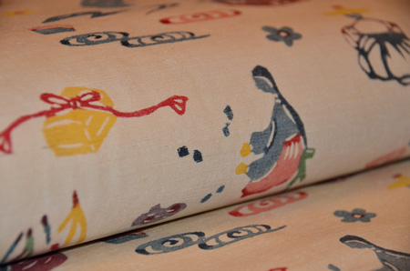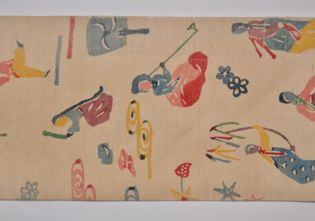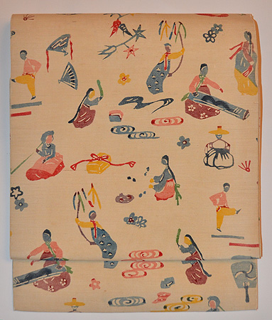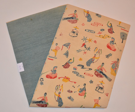 薄香の地に韓国のようすが描かれている、とても珍しいちょっと前の紅型です。