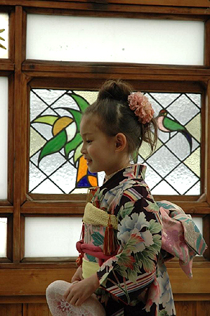 小さな身体を優しく包む、ふんわりと柔らかい縮緬、錦紗の着物。