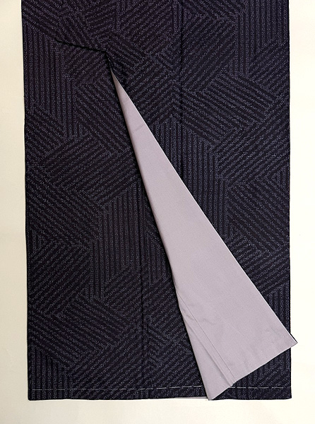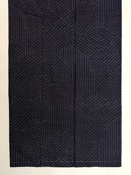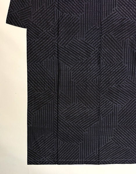 細かい変わり亀甲文で大きな幾何学文様を織り出した本場結城紬です。