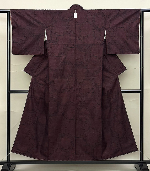 明るい紫が美しい紫根染めの袷です。一枚は手に入れたいあこがれの絞り染めですね。