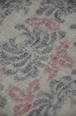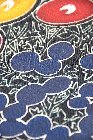 顔料で染める沖縄の本紅型とちがい、浦野の紅型は染料で用いられていますが、ただ染めるだけではなくしっかりと摺りこんでいます。
