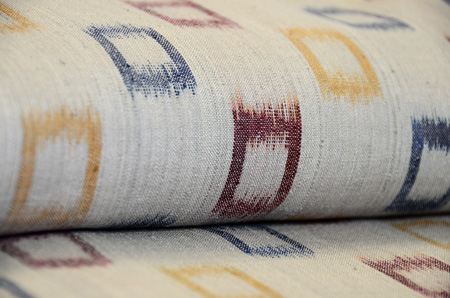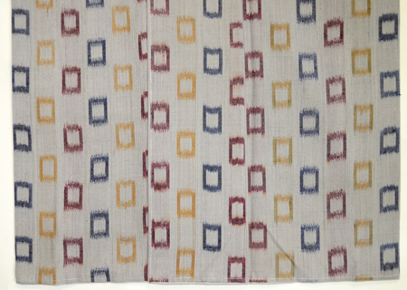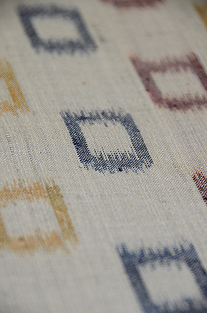 色とりどりに織りだされた、枡のような四角の経絣模様が遊び心に溢れています。