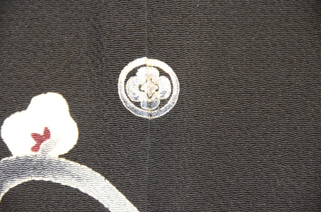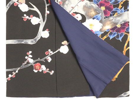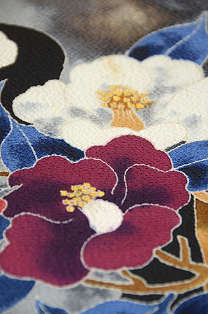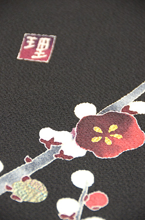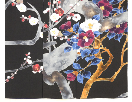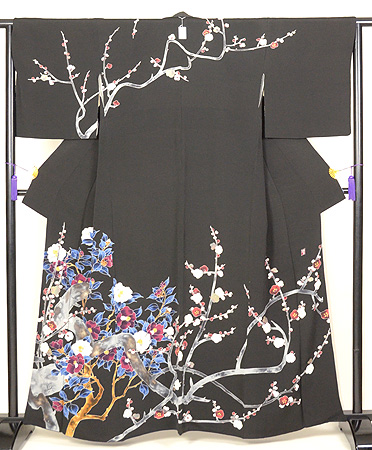 黒地梅に椿の図縮緬地友禅訪問着
