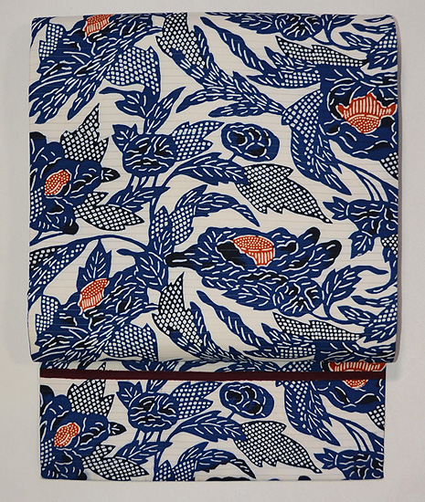 動きのあるシダ文様は少しモダンな要素を持ち、合せる着物の巾を広げているように感じます。