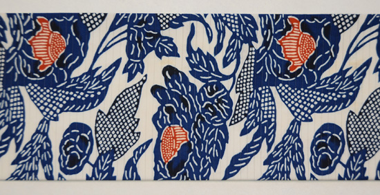 白場に明るい、牡丹というよりも、藍の花が咲いたらこんなだろうと想像したくなるような、お花が咲いています。