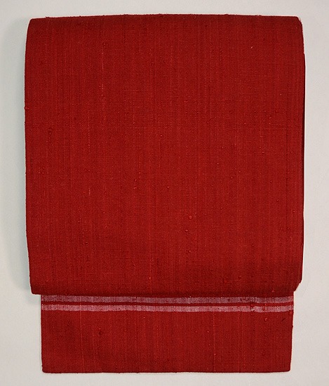 浦野理一作 蘇芳色縦節紬名古屋帯